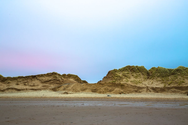 Sand dunes at Baglan Burrows, a long exposure at dusk.